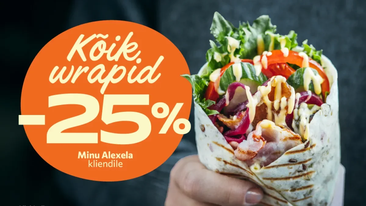 Midagi vaid sulle – sest oled Minu Alexela klient! 01.09.2025 - 30.09.2025 Wraplliad -25% Minu Alexela kliendile.Tule ja naudi maitsvat wrapillat Alexela kohvik-poes.Menüü